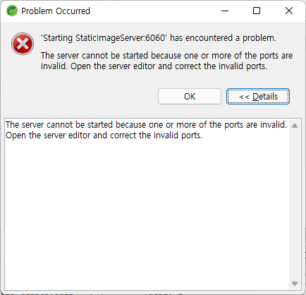 하지만 포트설정이 잘못되면 에러가 발생되면서 서비스 구동을 할 수 없다.