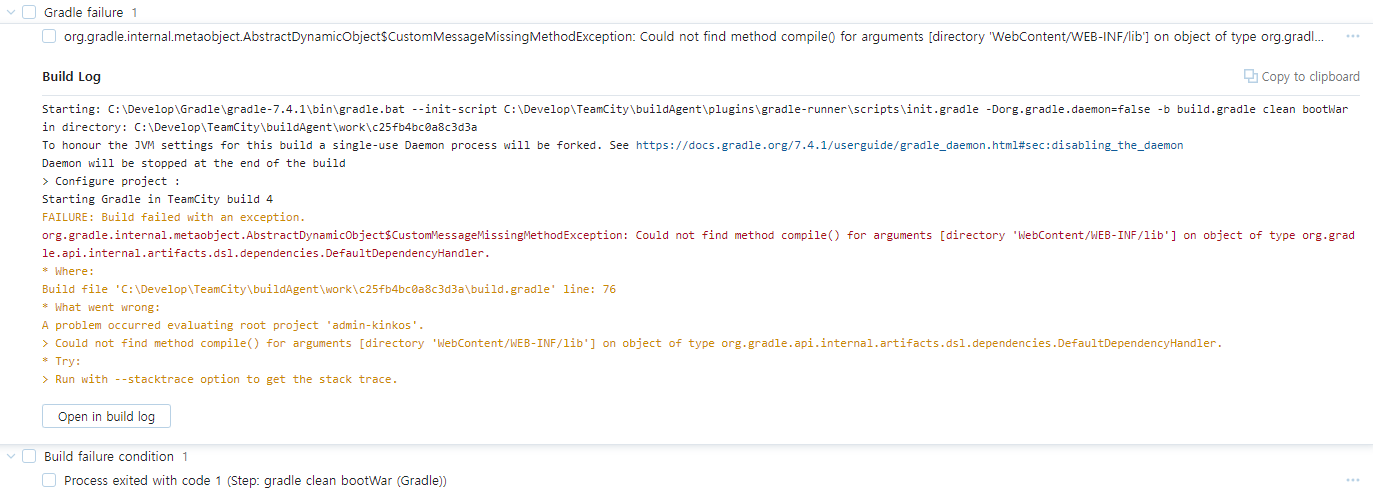 TeamCity 첫번째 STEP : gradle clean bootWar 시 에러발생
