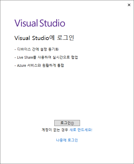 나중에 로그인 선택
