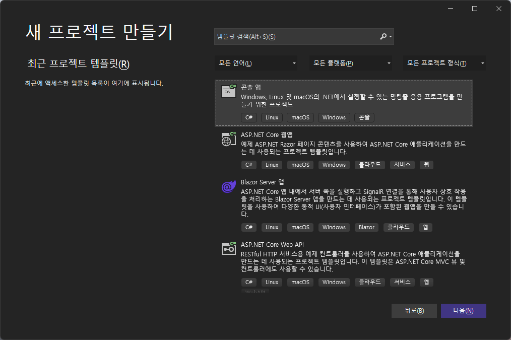Framework - .NET 6.0(장기 지원) 선택 후 만들기