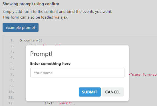prompt 자바스크립트 코드를 사용하지 않고 jquery confirm 플러그인의 prompt 모듈을 이용하여 입력값을 받아 해결하였다.