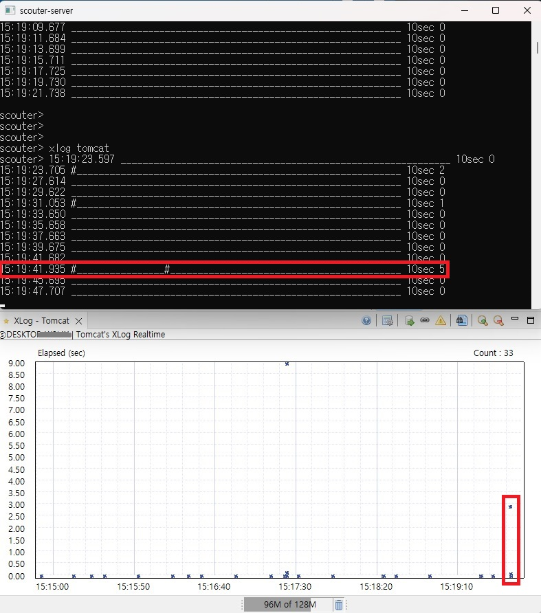 3. XLog의 점이 콘솔과 클라이언트에 표시된 것을 확인할 수 있다.