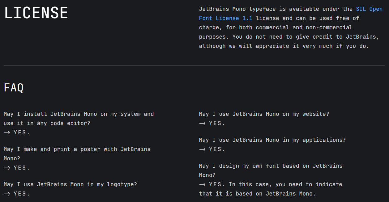 사이트 URL - https://www.jetbrains.com/lp/mono/#license