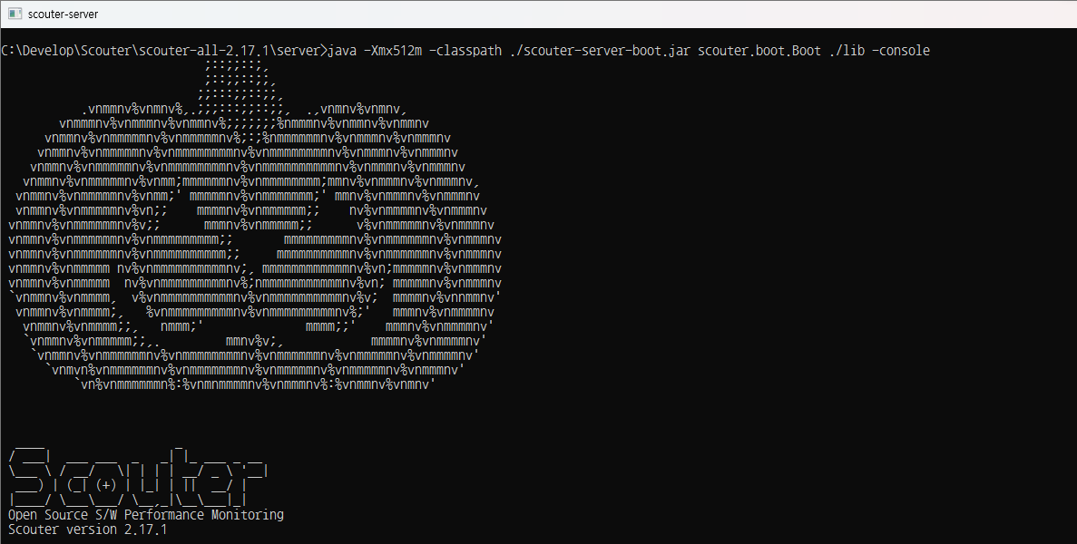 C:\Develop\Scouter\scouter-all-2.17.1\server>java -Xmx512m -classpath ./scouter-server-boot.jar scouter.boot.Boot ./lib -console