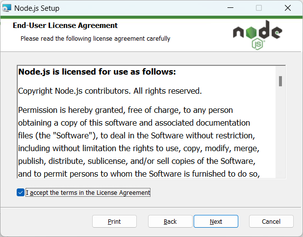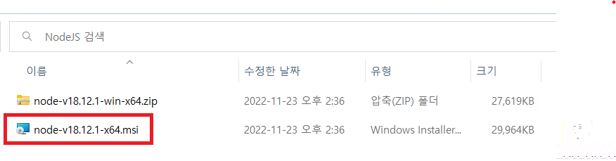 node-v18.12.1-x64.msi 파일을 더블클릭하여 설치