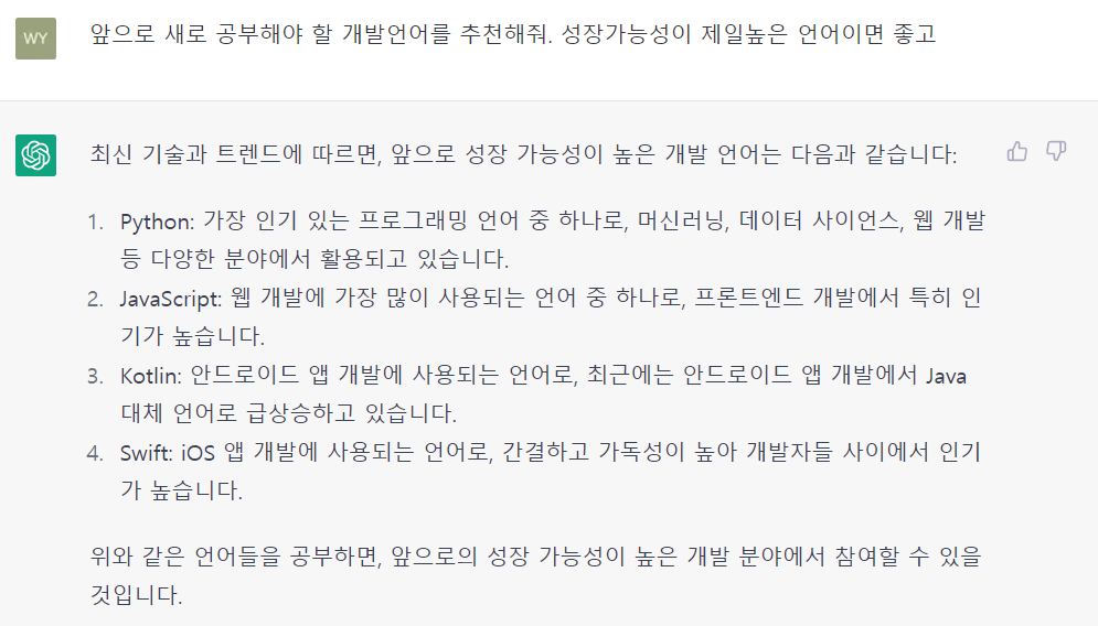 Q : 앞으로 새로 공부해야 할 개발언어를 추천해줘. 성장가능성이 제일높은 언어이면 좋고