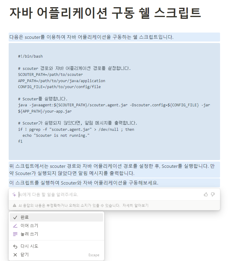 노션AI 요청사항 "scouter를 이용하여 자바 어플리케이션 구동시켜주는 쉘스크립트 좀 작성해줘"