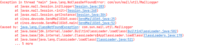 Exception in thread "main" java.lang.NoClassDefFoundError: com/sun/mail/util/MailLogger