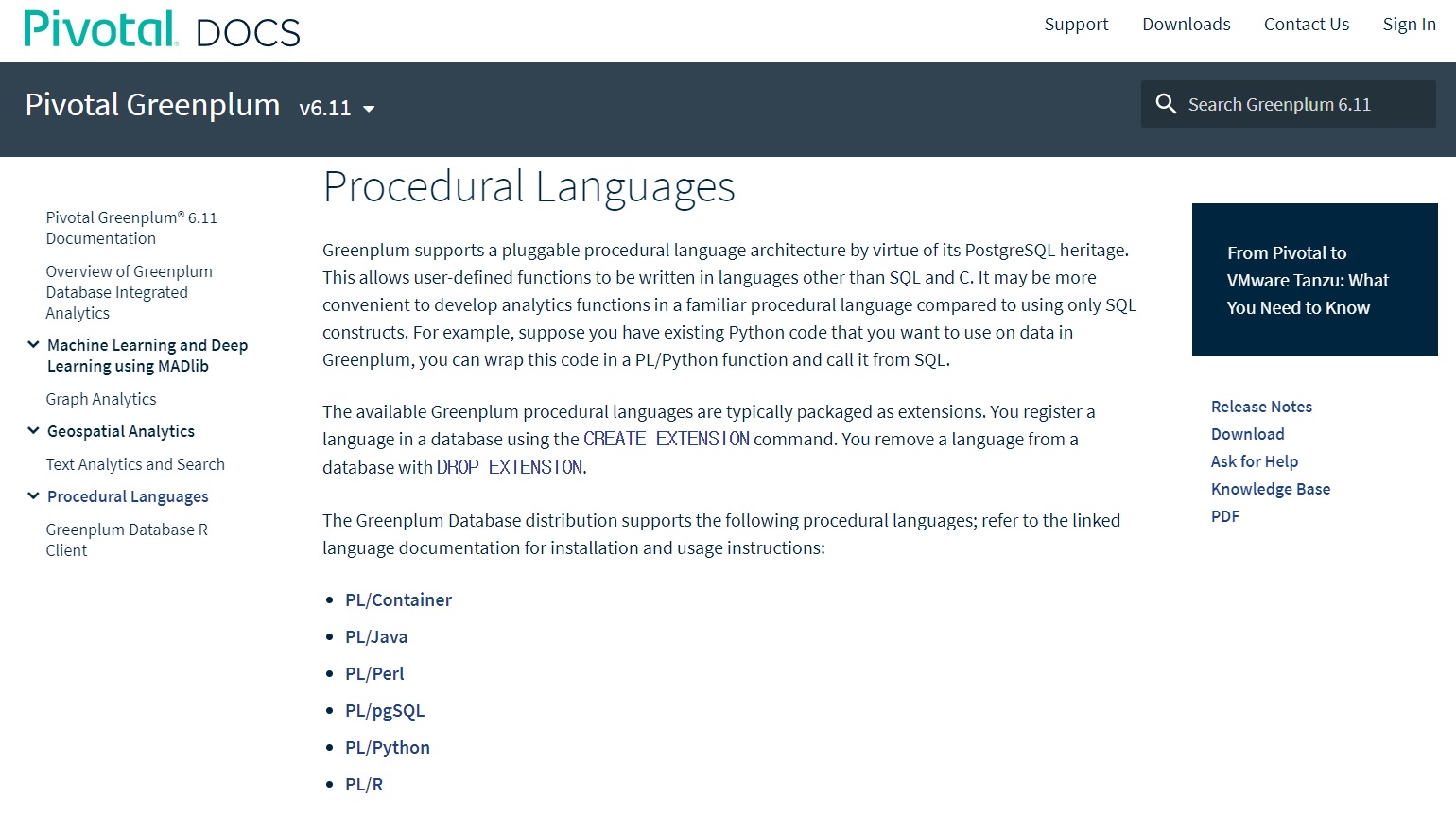 Procedural Languages | Pivotal Greenplum Docs