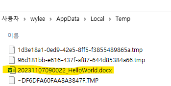 * - 경로 예) C:\Users\wyleedp\AppData\Local\Temp\20231106101051_HelloWorld.docx