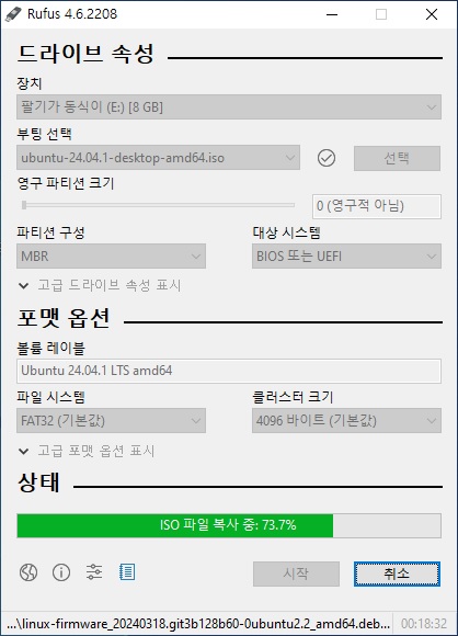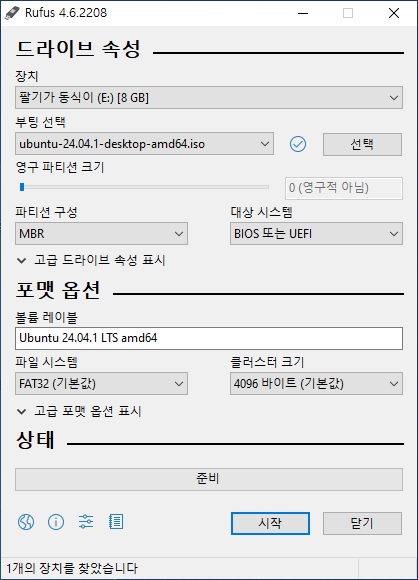 3. 부팅이 되는 USB를 만들어 주는 rufus 프로그램 설치(rufus-4.6.exe)