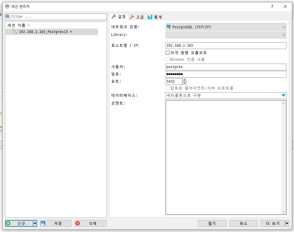 설정파일을 변경뒤 postgresql 서비스를 재기동한다.