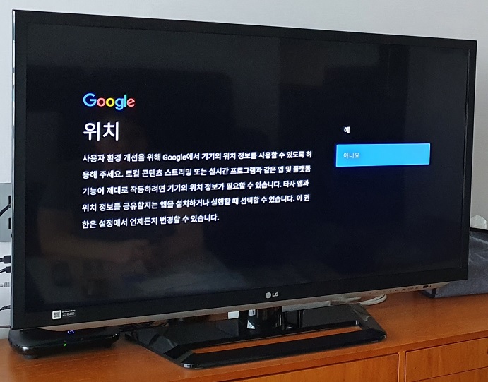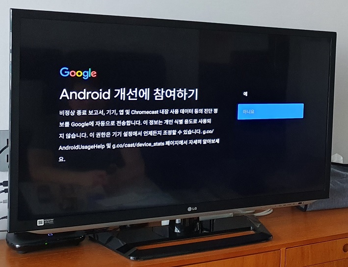 유의사항 > 맞춤정보받기 > 구글 어시스던트 설정를 완료하면 안드로이드TV 사용가능