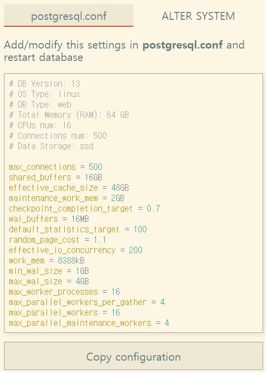 postgresql 구글링 중 postgresql 버전별로 postgresql.conf 권장 파라미터를 제공해 주는 사이트를 발견