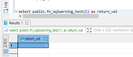 public.fn_sqlwarning_test(<입력값>) - 입력값을 반환해 주는 function