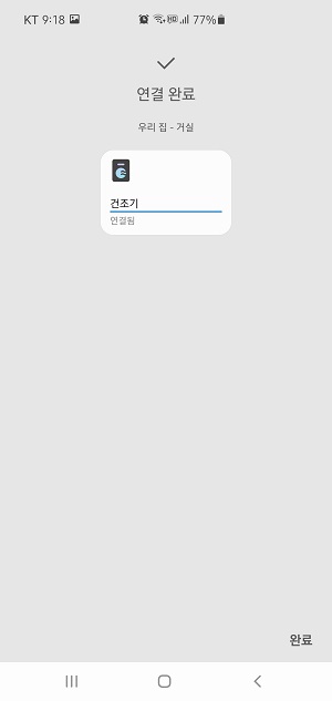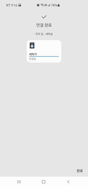 세탁기와 같은 단계를 수행하면 건조기도 등록이 완료된다.