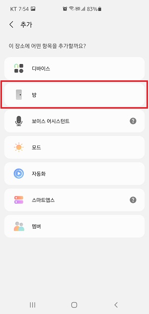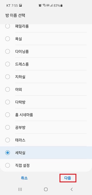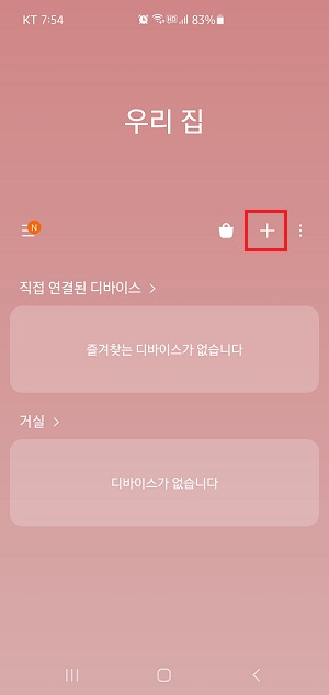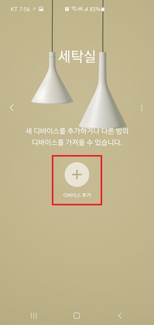 1. SmartThings 앱을 실행하여 메인화면의 + 아이콘을 클릭하여 먼저 방(세탁실)을 추가