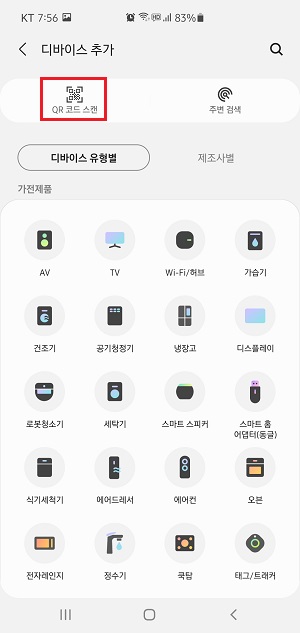 2. 디바이스 추가 - 세탁기 QR코드스캔