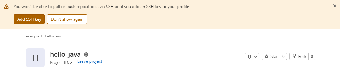 SSH Key 를 등록하지 않았을때 GitLab 화면에 Alert 창이 계속 표시될 것이다.