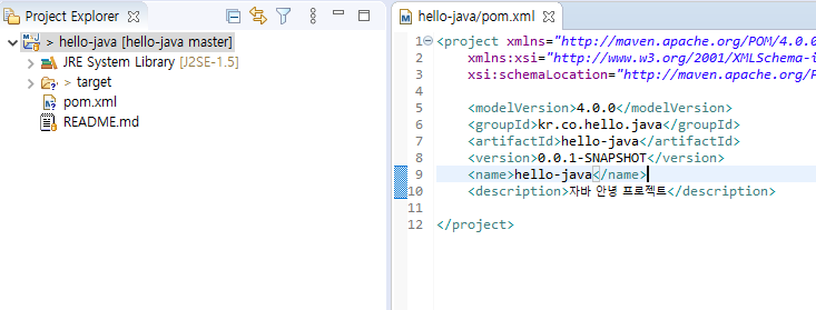 pom.xml 이 생성되면서 target 폴더가 생성된 것을 확인할 수 있다.