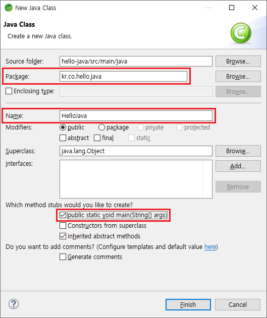 Package: kr.co.hello.java