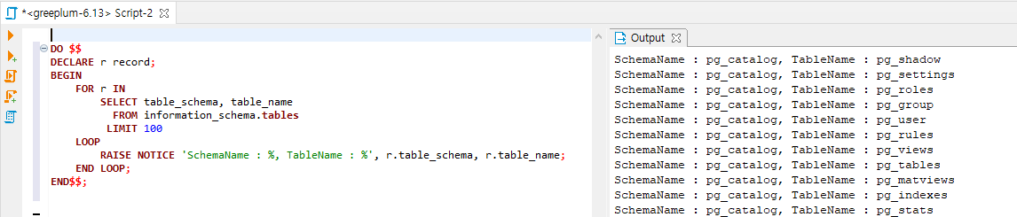 1. RAISE NOTICE를 이용하여 DBeaver Output 표시