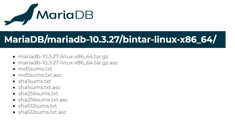 mariadb-10.3.27 > bintar-linux-x86_64 > mariadb-10.3.27-linux-x86_64.tar.gz 클릭하여 다운로드한다.