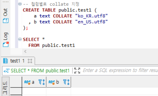 유의사항은 DB collate가 ko_KR.utf8 으로 설정되어 있으면 ko_KR.euckr 로 정렬기준을 변경할 수는 없는 것으로 파악이 된다.