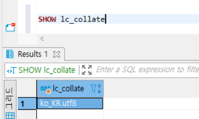 유의사항으로써 collate 값은 꼭 쌍따옴표를 이용해야 하며 대소문자를 정확히 구분해야 한다.