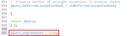 추후 jQuery migrate 에 문제가 생겨 추적/디버깅이 필요할때는 코드를 삭제하거나 false 옵션을 지정하면 된다.