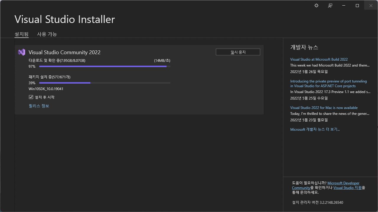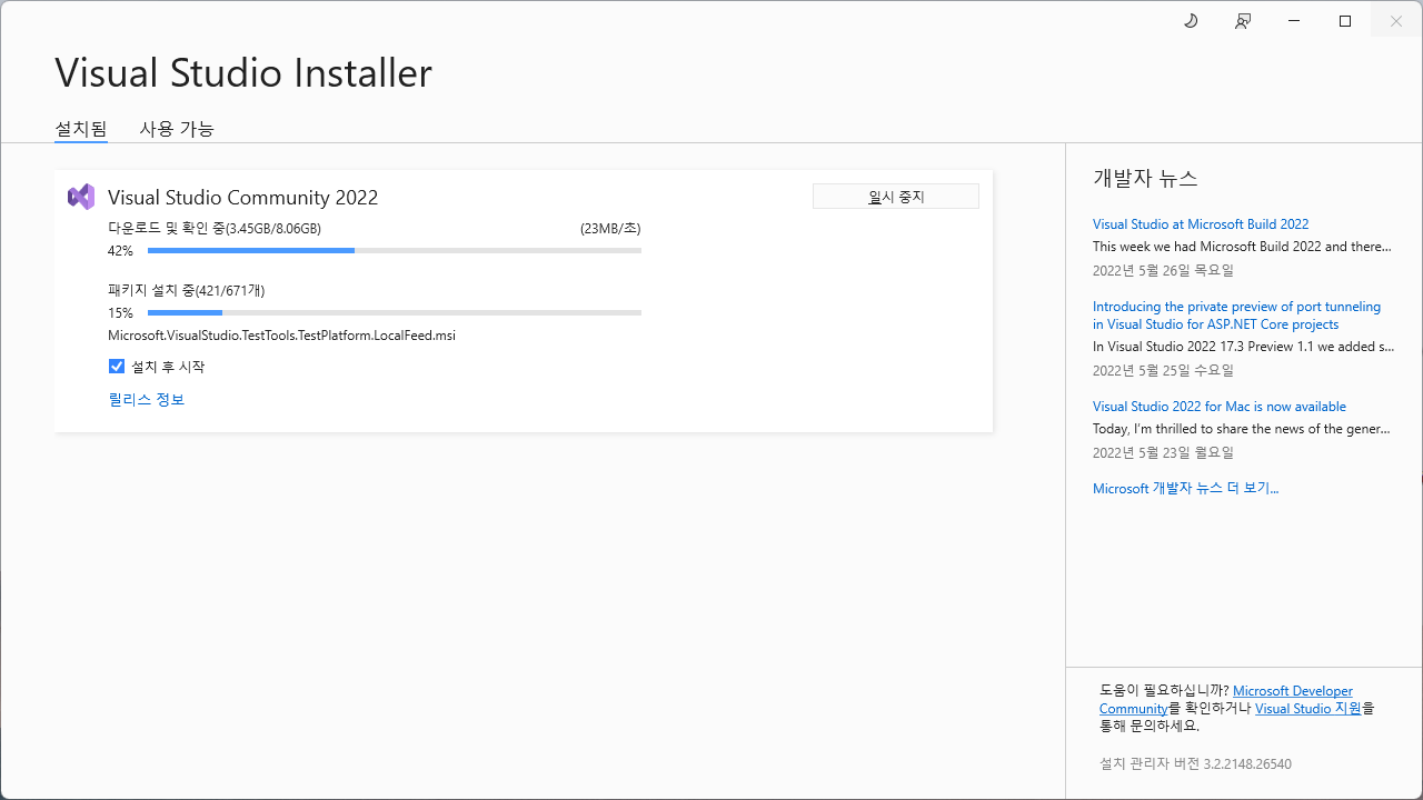 Visual Studio 2022 Community(17.2) 설치방법(윈도우11)