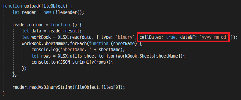 SheetJS 라이브러리를 이용하여 엑셀로드시 날짜형식 처리방법