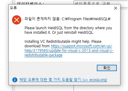 에러창이 표시되면 URL로 들어가 Visual-C 관련 패키지를 설치해 주면 된다.